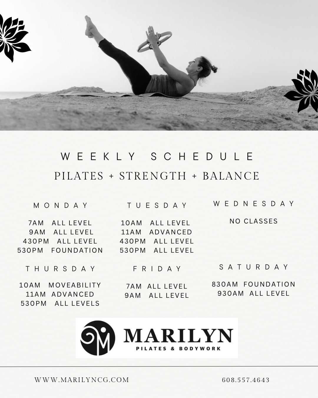 Marilyn Pilates offers private, duet and small group class options. Gain balance, strength, and mobility. Our goal is to have you feel taller, stronger and more energized after each and every session.